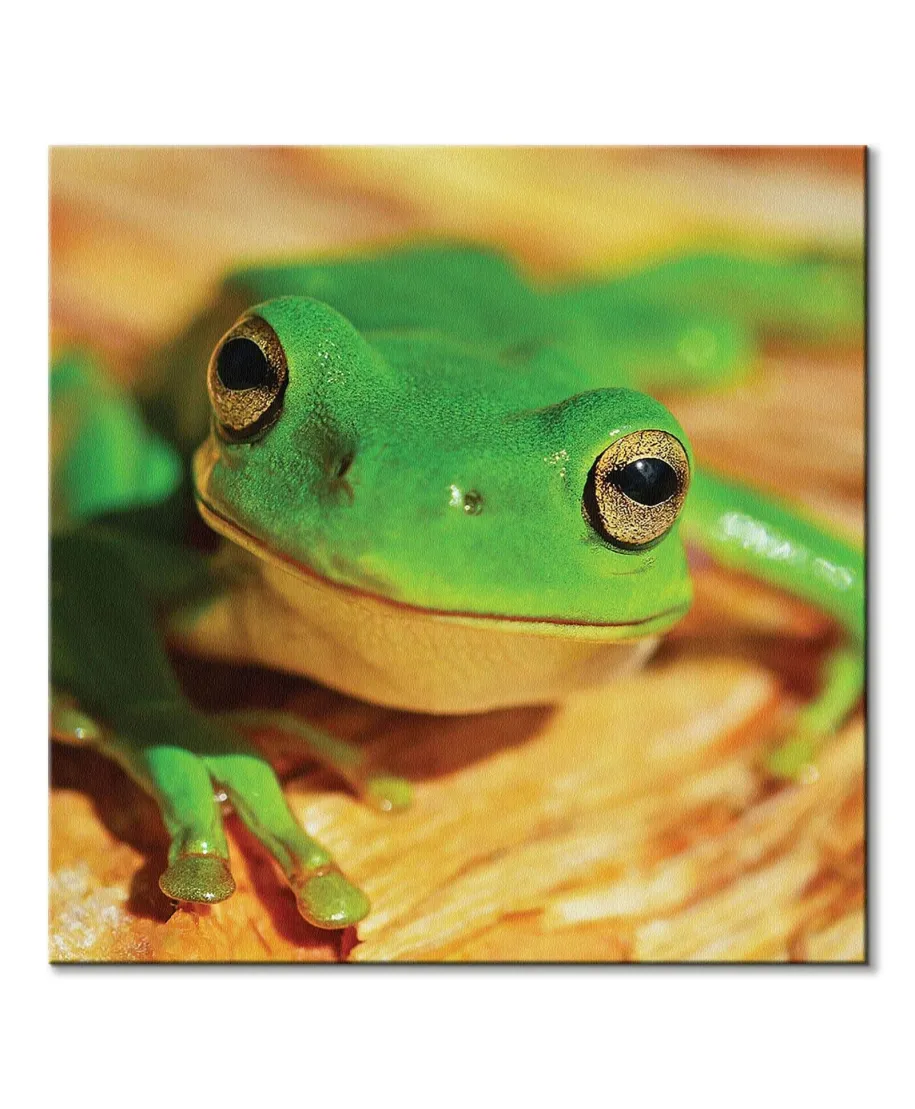 Oryginalny obraz na płótnie Zielona Żaba Oryginalny i licencjonowany obraz na płótnie idealny na każdą ścianę. Nasze obrazy wyróżniają: Fantastyczne barwy Wysokie nasycenie barw i ostrość, kolory utrzymują się przez długie lata. Płótno wysokiej jakości Płótno poliestrowe 300g/m2 jest trwałe i mocne, jego struktura jest naturalna. Trwałe kolory, Dodatkowo lakierowana powierzchnia sprawia, że kolory są żywe przez dziesięciolecia. Solidna rama, Wykonana jest z naturalnego, sosnowego drewna, jest mocna i gruba a obraz solidny i wytrzymały. Zadrukowane boki, obrazy posiadają zadrukowane boki, nie potrzebują żadnej dodatkowej oprawy. Szczegóły techniczne: wydruk na płótnie poliestrowym 220g/m2 sosnowe krosna o grubości 2 cm i szerokości 3,5 cm druk cyfrowy