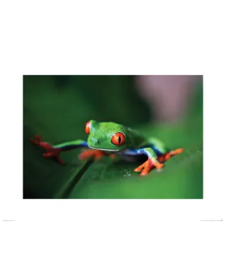 Zielona Żabka- oryginalna reprodukcja Szukasz oryginalnej reprodukcji na ścianę? Głębokie nasycenie barw i ostrość fotografii sprawi, że nie będziesz mógł od niej oderwać wzroku. Reprodukcja posiada licencję, to oficjalne wydanie. Powierzchnia reprodukcji jest matowa, dzięki temu nie odbija intensywnego światła i przyjemnie się ją ogląda. Papier na którym wydrukowany jest obraz jest bardzo mocny a druk trwały. Niektóre reprodukcje posiadają białe, szerokie marginesy widoczne na przedstawionym obrazku. Szczegóły techniczne: wydruk na mocnym i grubym papierze 300g/m2 wymiary arkusza reprodukcji 80x60 cm